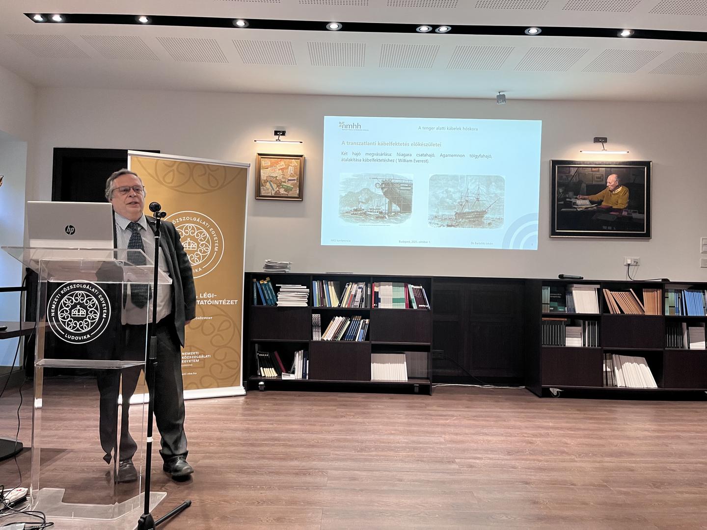 The historical development of telecommunication cables was presented by Dr István Bartolits, honorary associate professor at the Budapest University of Technology and Economics and an expert at the National Media and Infocommunications Authority. His presentation traced the evolution of submarine communications from the 19th-century telegraph cables to today’s high-capacity optical fibre networks.